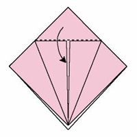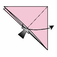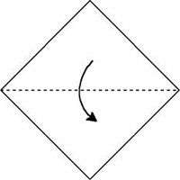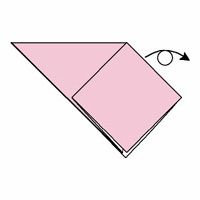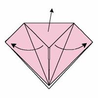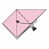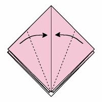 比例:1:1正方形紙 運用的記號:山摺線、谷摺線、沿箭頭方向摺、摺到後方、向內從中摺、向外反摺、翻轉、押入 學習的摺法:打開袋子壓平 |