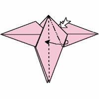 | 13.背面同樣重複步驟6~11 | 14.兩片翅膀向內從中摺到 虛線處 |