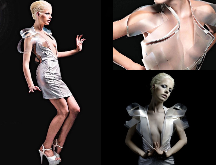 服裝在一般大眾的印象中都是柔軟舒適的布類製品,不過在時裝品牌的伸展台上可一點都不需要顧慮合理性與邏輯,管他玻璃、金屬、甚至紅酒做成的服裝都可以穿上身,所以用塑料製成的3D列印禮服也是剛剛好而已。設計師Francis