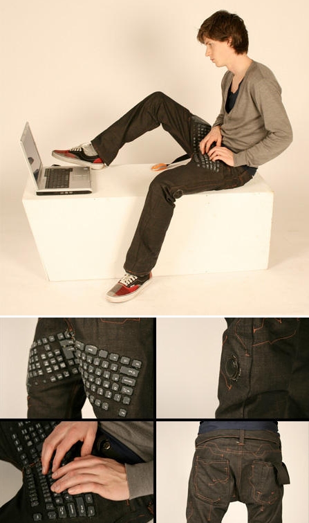 Pants」,軟式材質鍵盤緊密的和牛仔褲合而為一,只要穿上牛仔褲,就可以雲遊四海,隨處「敲打」。如果你用的正好是平板電腦,穿上鍵盤牛仔褲,不但省了