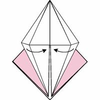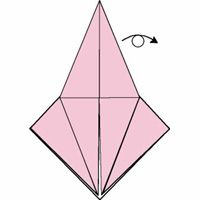 比例:1:1正方形紙 運用的記號:山摺線、谷摺線、沿箭頭方向摺、手指撐開、翻轉 學習的摺法:打開袋子、向內從中摺、組合記號、壓平 |