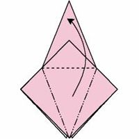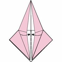 | 16.同樣對齊中間摺 | 17.頭及尾巴向內從中摺 | 18.頭部再向內從中摺出嘴 部 |