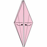 所有摺紙的入門第一課便是摺紙鶴,可能已經有很多人會摺了,還不會摺的人可以在此練習,順便訓練看摺紙記號及了解摺紙的基本概念如山摺線、谷摺線及向內從中摺,有助於日後摺更複雜的作品